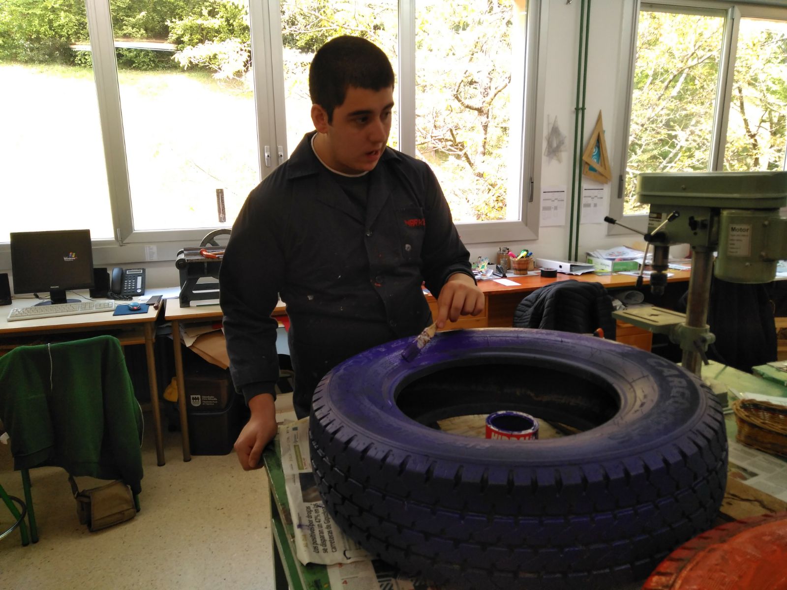 Lorategian lorontzi gisa dauzkagun gurpilak garbitzen eta margotzen aritu gara berriro lorez betetzeko.
